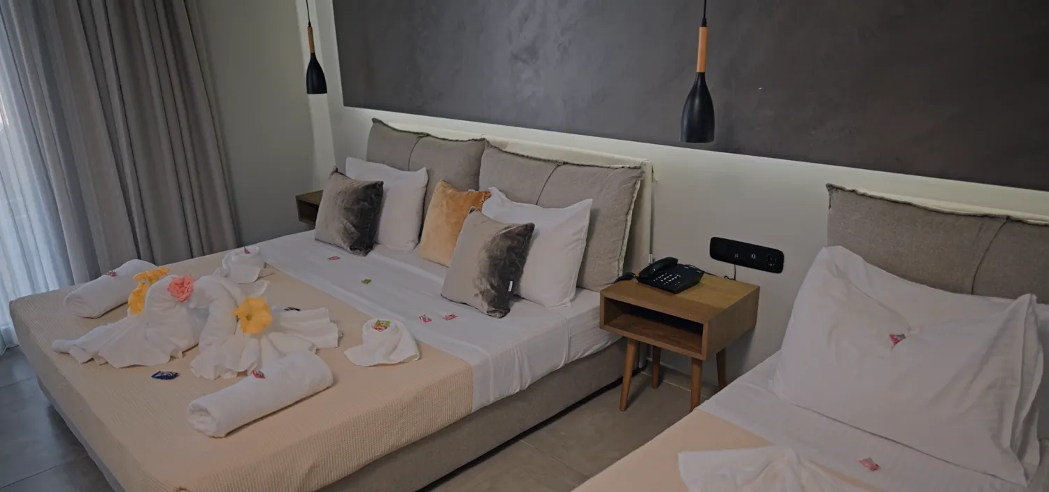 Βρίσκονται στο ισόγειο τμήμα του ξενοδοχείου και μπορούν να φιλοξενήσουν από 1 έως 3 άτομα.